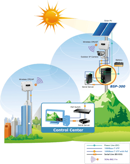 WiFiスポット、監視カメラを屋外に設置する場合、電源の確保、通信回線の確保が重要になります。このソリューションは自立型で太陽光発電に必要な全てを提供します。