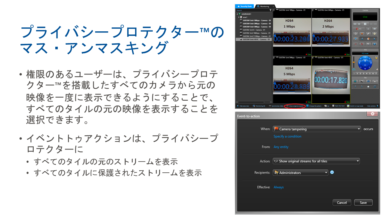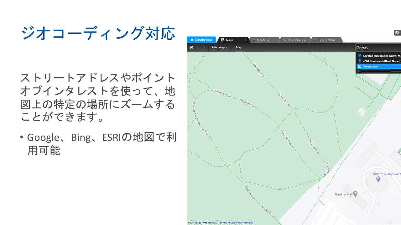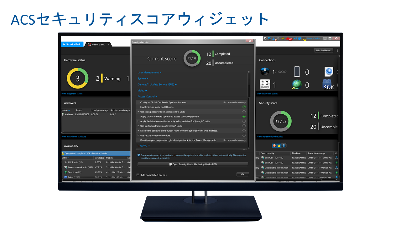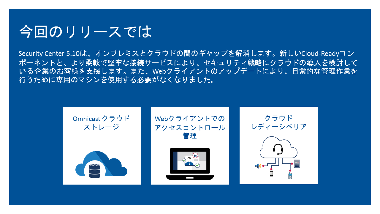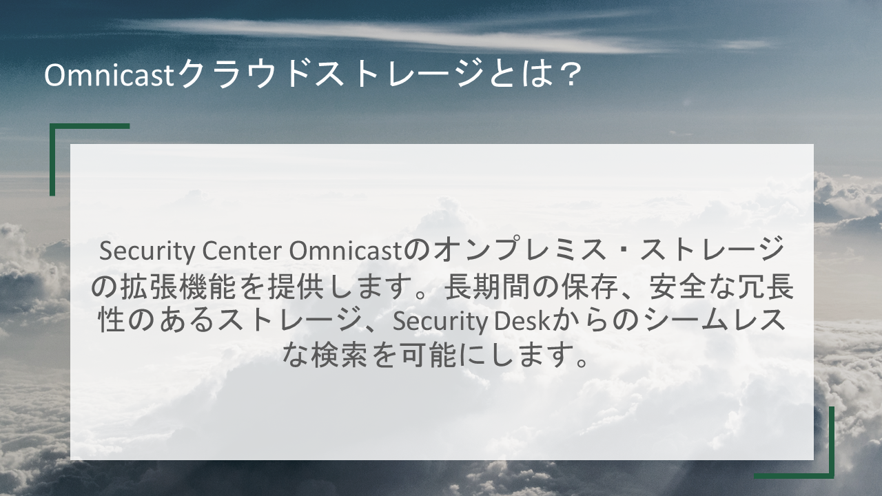 Security Center (セキュリティセンター)は、IP セキュリティ監視システムをシンプルで直感的なインターフェースに統合することにより、セキュリティ運用の負荷の低減を実現したGenetec 社の総合セキュリティプラットフォームです。入退室管理、ビデオ監視、自動ナンバープレート認識から、コミュニケーション、侵入検知、ビデオ分析まで、Security Center は正確な状況の把握、統合された指揮統制やクラウド接続などの優れた機能で企業・組織を強化します。