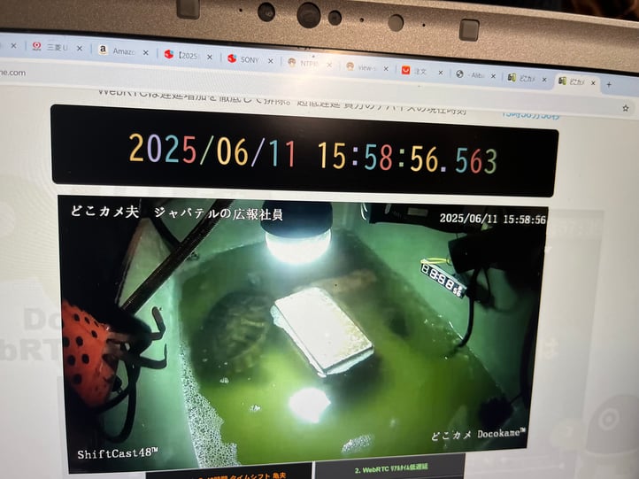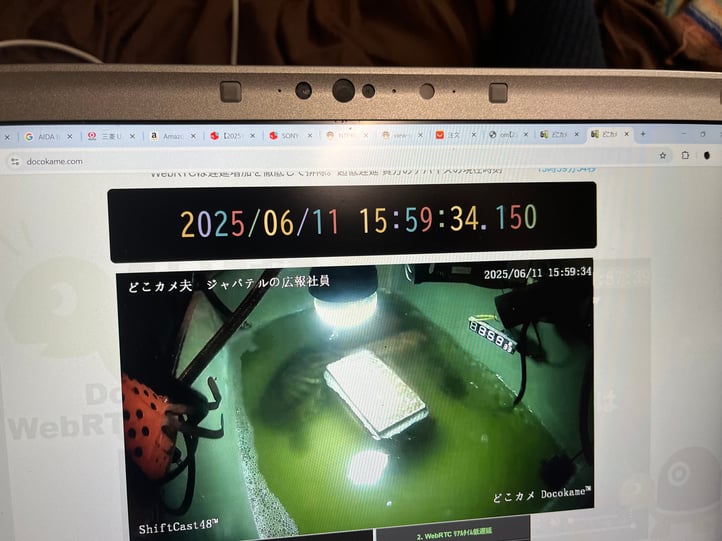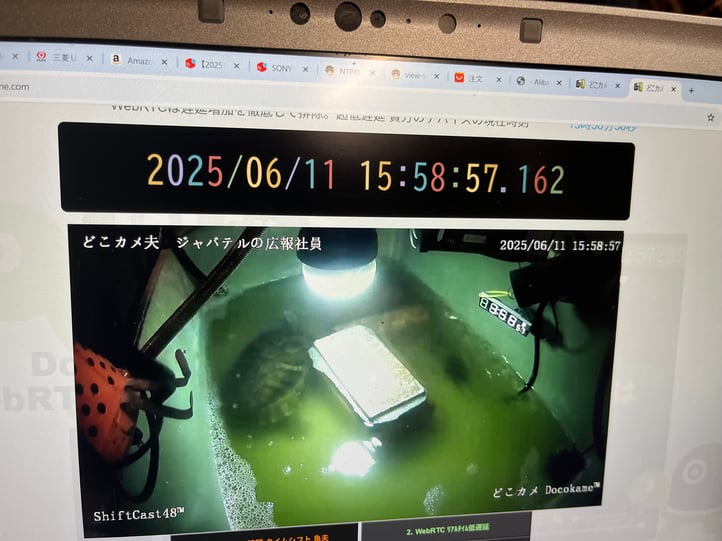 DocokameのWebRTC映像配信は、驚くほどの超低遅延(1秒未満)を実現しています。以下は、実際の映像比較と撮影時のタイムスタンプを用いて、「リアルタイム性の証明」として撮影された写真です。